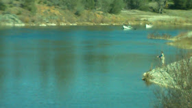 My son on shore swing a fly with Tom Page of Reel Anglers Fly Shop in Grass Valley California in one of the two boats in the background.